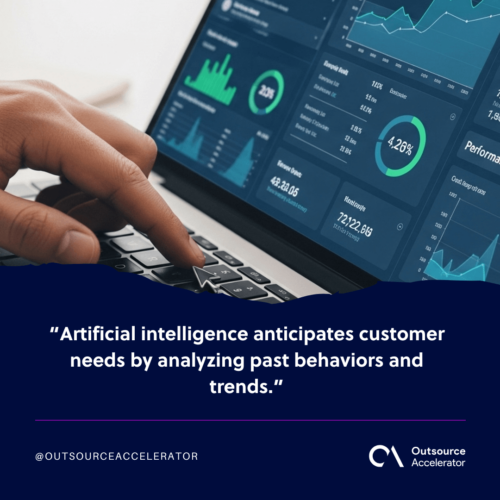 Artificial intelligence anticipates customer needs by analyzing past behaviors and trends. This proactive approach allows businesses to address potential issues before they arise, enhancing customer satisfaction and operational efficiency.