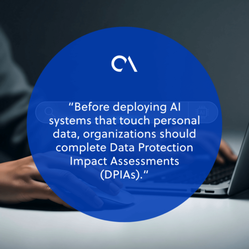 Before deploying AI systems that touch personal data, organizations should complete Data Protection Impact Assessments (DPIAs).