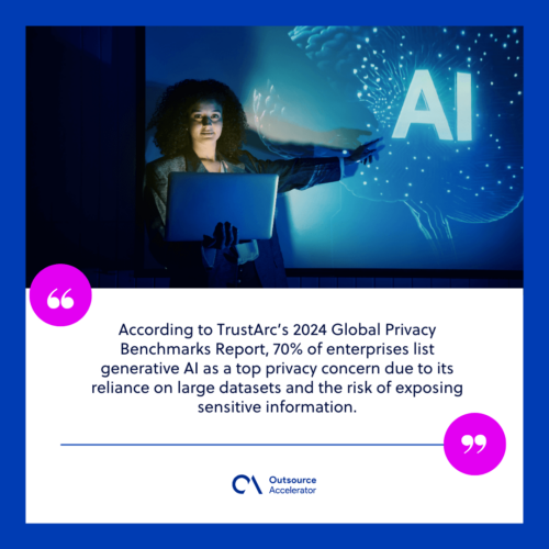 According to TrustArc’s 2024 Global Privacy Benchmarks Report, 70% of enterprises list generative AI as a top privacy concern due to its reliance on large datasets and the risk of exposing sensitive information.