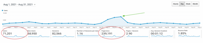 Website traffic also jumped up significantly to 71,201 unique visitors (up 22%), and 239,191 page views (up 25.01%) for August.