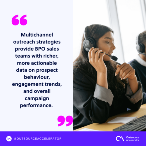 Multichannel outreach strategies provide BPO sales teams with richer, more actionable data on prospect behaviour, engagement trends, and overall campaign performance.
