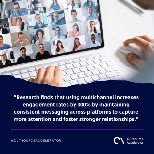 Research finds that using multichannel increases engagement rates by 300% by maintaining consistent messaging across platforms to capture more attention and foster stronger relationships.