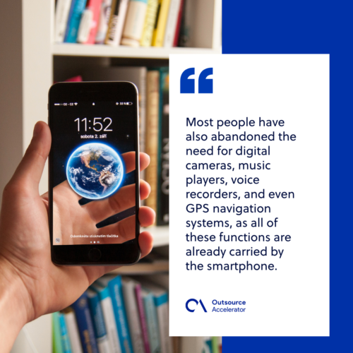 Most people have also abandoned the need for digital cameras, music players, voice recorders, and even GPS navigation systems, as all of these functions are already carried by the smartphone.