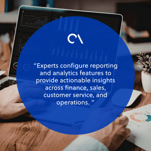 Experts configure reporting and analytics features to provide actionable insights across finance, sales, customer service, and operations. Decision-makers gain a holistic view of performance, identify opportunities for improvement, and make faster, evidence-based strategic choices.