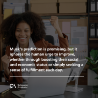 Musk’s prediction is promising, but it ignores the human urge to improve, whether through boosting their social and economic status or simply seeking a sense of fulfillment each day. Apart from financial security, work boosts an individual’s pride and self-esteem. Some people may harbor ill feelings toward work, but most take delight in being productive members of society.