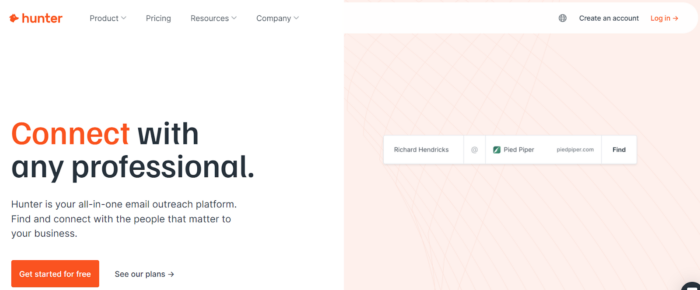 Hunter focuses on domain search, person search, and verification with a clean UI and bulk tools. The platform crawls the web for publicly available professional emails and shows sources for transparency.