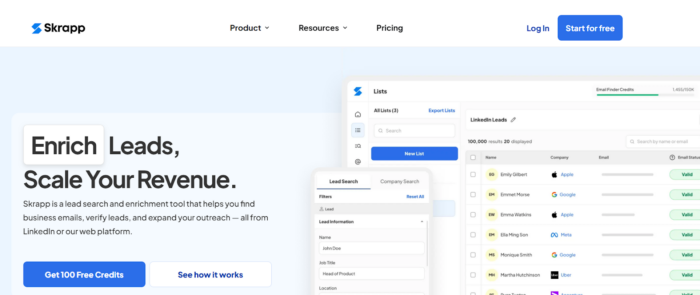 Skrapp.io is centered on LinkedIn-driven prospecting with a Chrome workflow and a bulk finder/verifier.