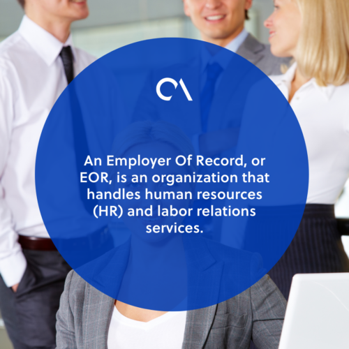 An Employer Of Record, or EOR, is an organization that handles human resources (HR) and labor relations services. They serve as the employer for tax purposes while the employee performs work at a different company.