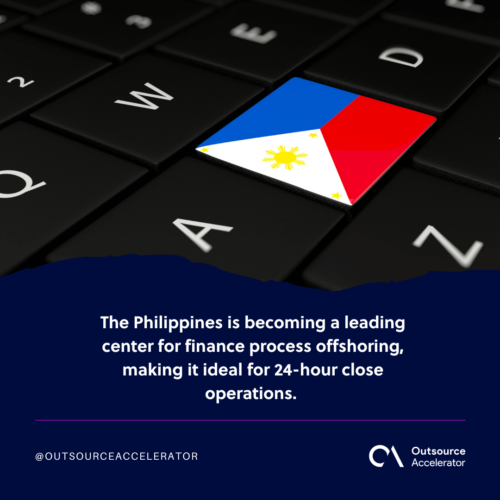 The Philippines is becoming a leading center for finance process offshoring, making it ideal for 24-hour close operations.