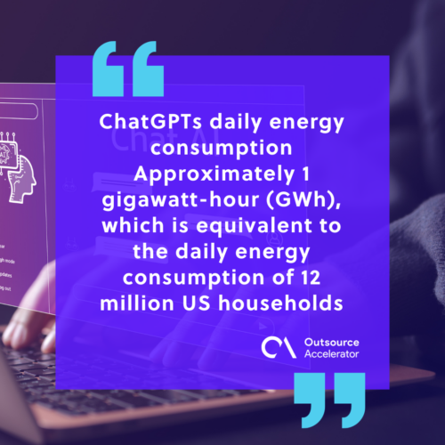 ChatGPTs daily energy consumption? Approximately 1 gigawatt-hour (GWh), which is equivalent to the daily energy consumption of 12 million US households.