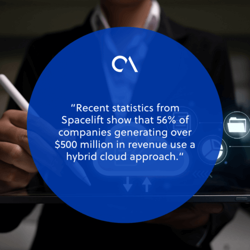 Recent statistics from Spacelift show that 56% of companies generating over $500 million in revenue use a hybrid cloud approach. Additionally, 70% of IT leaders say successful digital transformation is difficult without a strong hybrid cloud strategy.
