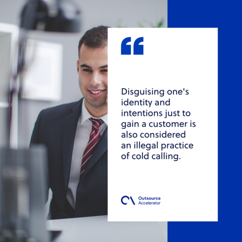 Some countries prohibit sending unsolicited marketing emails to email addresses without the explicit consent of the user. Disguising one’s identity and intentions just to gain a customer is also considered an illegal practice of cold calling.