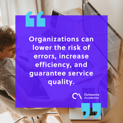Organizations can lower the risk of errors, increase efficiency, and guarantee service quality.