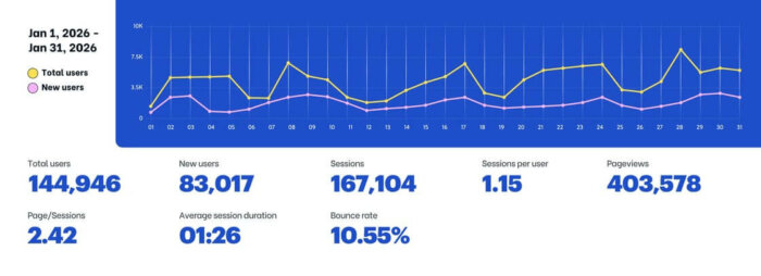 To kick off 2026, OA recorded 403,578 page views from 144,946 unique visitors, reflecting a significant increase in web traffic as businesses resumed operations and strategic planning for the new year.