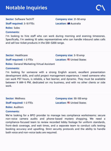 - Prioritized exposure to companies exploring outsourcing