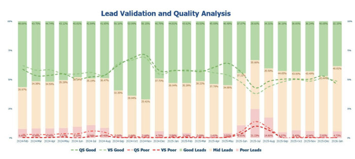 Outsource Accelerator analyzes the data from all inquiries and monitors them for quality. The platform assesses lead quality using a range of validation, quality, and engagement metrics.