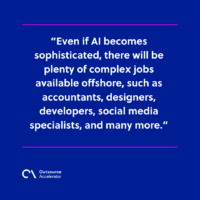 Even if AI becomes sophisticated, there will be plenty of complex jobs available offshore, such as accountants, designers, developers, social media specialists, and many more. Along with AI, these are the professions that will help the entrepreneur succeed.