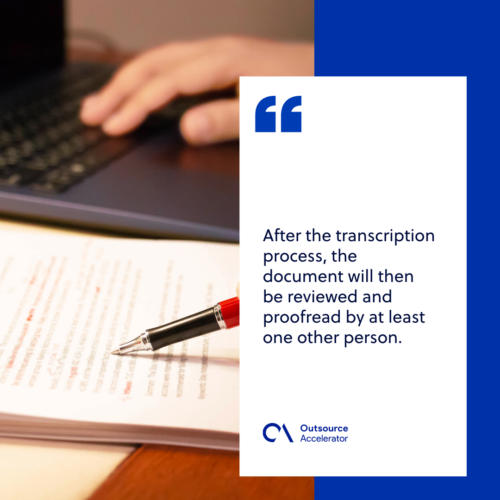 After the transcription process, the document will then be reviewed and proofread by at least one other person. This will ensure the accuracy of the output and that it is free from grammatical errors.