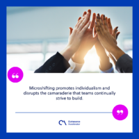 Microshifting promotes individualism and disrupts the camaraderie that teams continually strive to build. Working similar shifts allows for more and better collaboration among teammates. It is through consistent communication that members have a common understanding of their daily workflows or ongoing projects.