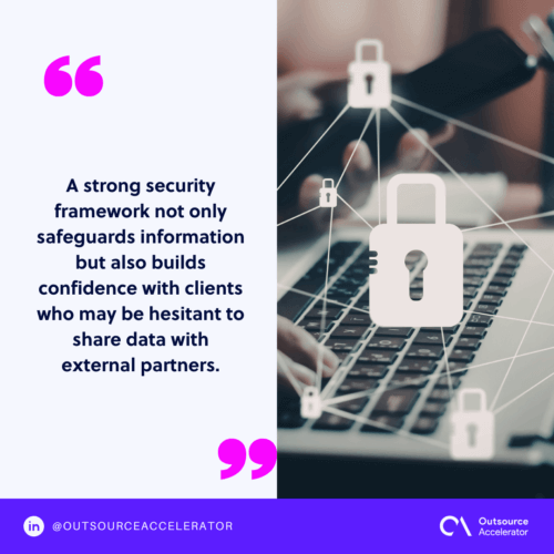 A strong security framework not only safeguards information but also builds confidence with clients who may be hesitant to share data with external partners.