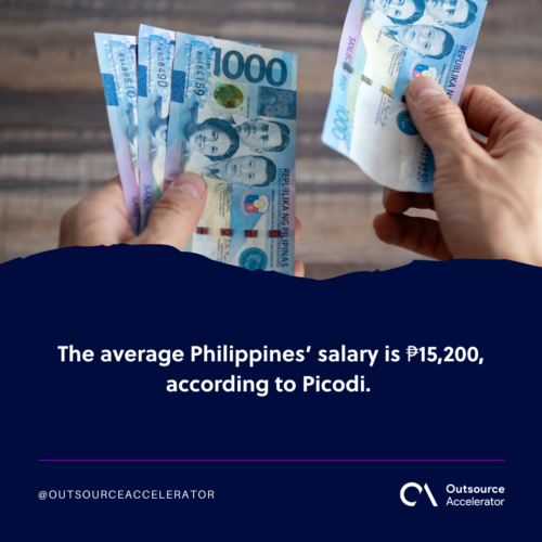 The average Philippines’ salary is ₱15,200, according to Picodi. While it sounds too low, many Filipinos started out with this salary. Most people used this as a starting point to catapult themselves into higher compensation brackets.