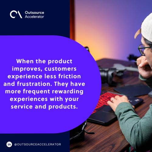 When the product improves, customers experience less friction and frustration. They have more frequent rewarding experiences with your service and products. They enjoy the features you’ve placed instead of being dragged down by them.