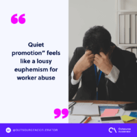 Netizens are calling it “quiet promotion,” which feels like a lousy euphemism for worker abuse. One day, a worker’s primary responsibility is to study market trends of a certain niche industry. The following week, the coverage broadens to the entire segment, and the employee suddenly has to manage a team of five — with no change in title or pay.