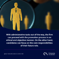 With administrative tasks out of the way, the firm can proceed with the promotion process in an ethical and objective manner. On the other hand, candidates can focus on the core responsibilities of their future role. Risks of burning out are eliminated, given a newfound transparency between the two parties. All that’s left is progress and a formidable partnership between employees and the corporation.