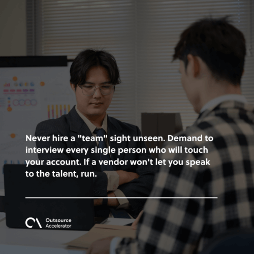 Never hire a “team” sight unseen. Demand to interview every single person who will touch your account. If a vendor won’t let you speak to the talent, run.