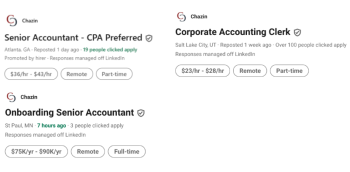 Open role/s | Corporate Accounting Clerk, Senior Accountant, Onboarding Senior Accountant |