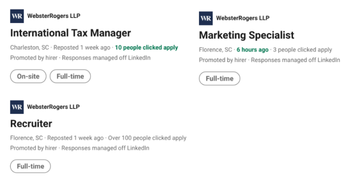Open role/s | Marketing Specialist, Recruiter, International Tax Manager |