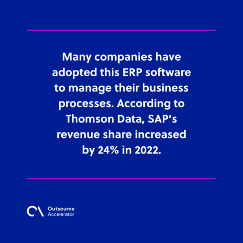 Many companies have adopted this ERP software to manage their business processes. According to Thomson Data, SAP’s revenue share increased by 24% in 2022.