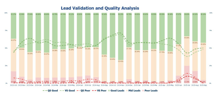 Outsource Accelerator analyzes the data from all inquiries and monitors them for quality. The platform assesses lead quality using a range of validation, quality, and engagement metrics.