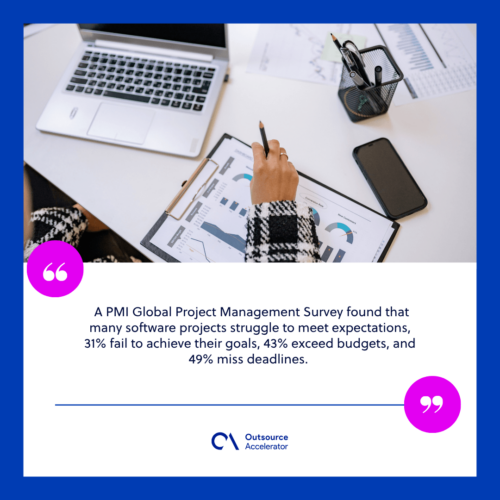 Selecting the right approach highly impacts project outcomes. A PMI Global Project Management Survey found that many software projects struggle to meet expectations, 31% fail to achieve their goals, 43% exceed budgets, and 49% miss deadlines.