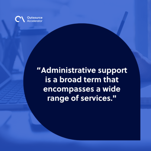 Administrative support is a broad term that encompasses a wide range of services. It includes virtual admin, typing services, phone answering, schedule management, travel PA, social media management, and more.
