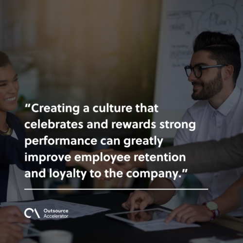 - Foster a positive culture. Creating a culture that celebrates and rewards strong performance can greatly improve employee retention and loyalty to the company.