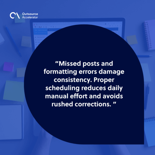 Missed posts and formatting errors damage consistency. Proper scheduling reduces daily manual effort and avoids rushed corrections.