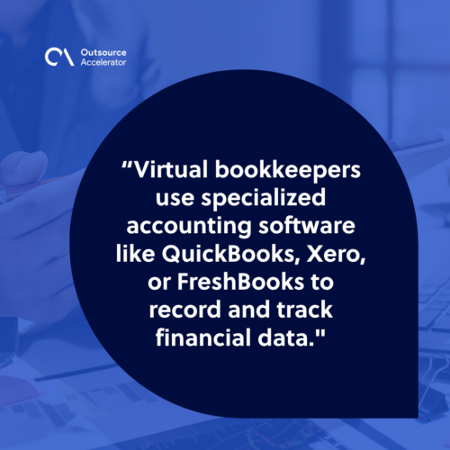 Virtual bookkeepers use specialized accounting software like QuickBooks, Xero, or FreshBooks to record and track financial data.