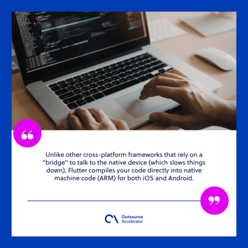 I recommend Flutter because it solves the performance problem in a unique way. Unlike other cross-platform frameworks that rely on a “bridge” to talk to the native device (which slows things down), Flutter compiles your code directly into native machine code (ARM) for both iOS and Android.