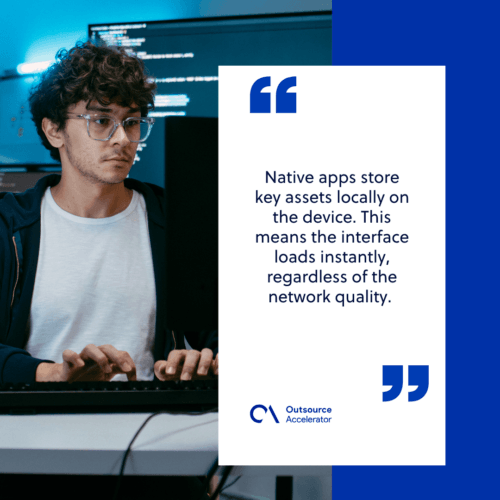 Native apps store key assets locally on the device. This means the interface loads instantly, regardless of the network quality.