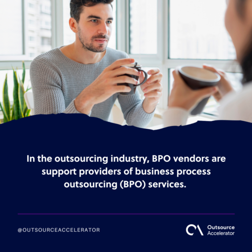 In the outsourcing industry, BPO vendors are support providers of business process outsourcing (BPO) services.