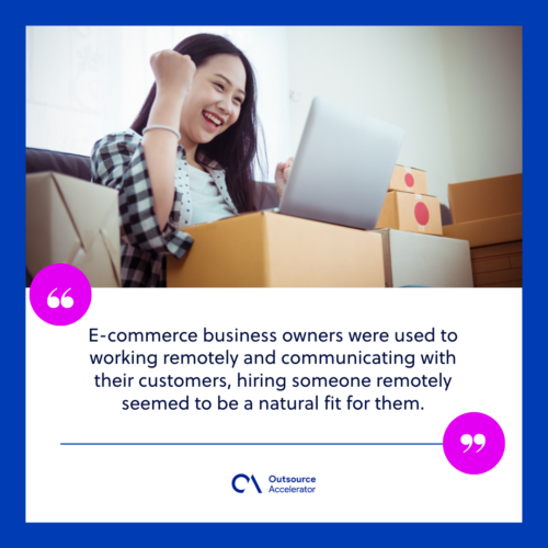 Describing the beginning of remote work, Catherine recalled, “Because e-commerce business owners were used to working remotely and communicating with their customers, hiring someone remotely seemed to be a natural fit for them.
